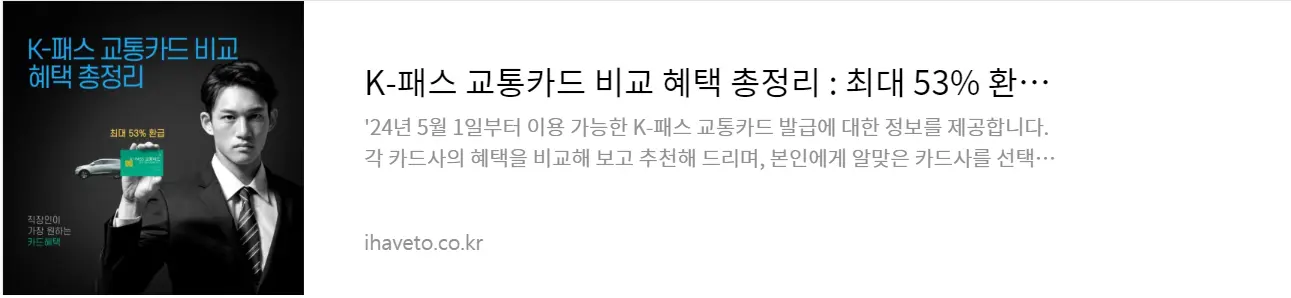 K-패스 교통카드 비교 혜택 총정리 : 최대 53% 환급 - 요래조래 블로그 (ihaveto.co.kr)